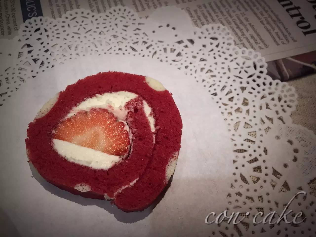 「波点瑞士卷儿」 内嵌草莓大果粒 甜淡适中 天然香草籽伴着浓浓的奶油来讨好你的味蕾 冷藏口感更佳