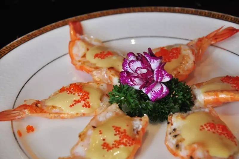 虾开背去线,丰富蜂蜜芥末酱和蟹籽