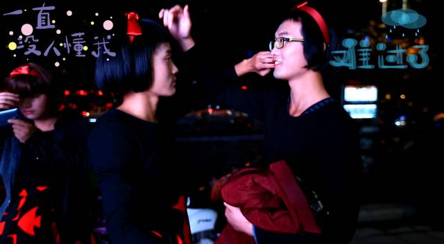 突现了一群女装扮相的男生