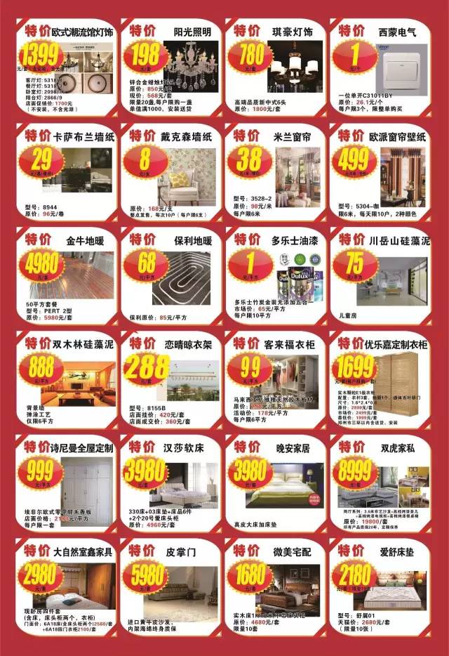 全市超畅销的200多个品牌,从家装设计到主材选购,再到开关灯具、窗帘墙纸、家具电器等装修60大类。