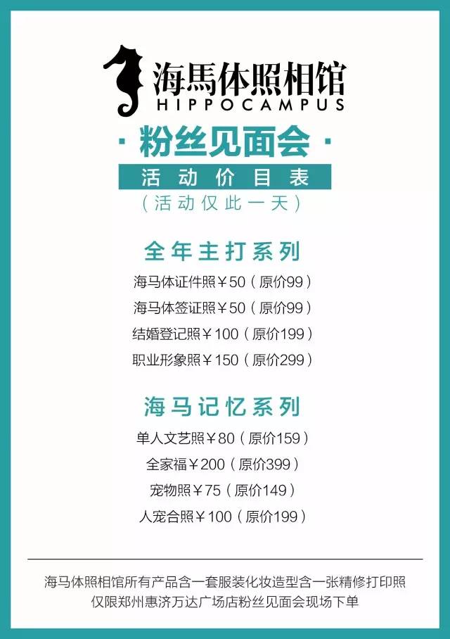 ADD:郑州市惠济区惠济万达广场4楼 海马体照相馆