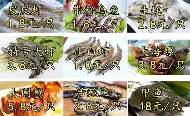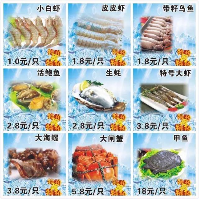 3块8一只的大海螺、3块8一只的特号大虾、