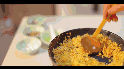 搅拌至粒粒金黄