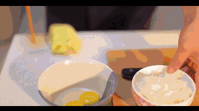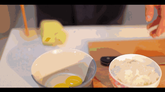 将米饭与蛋黄拌在一起