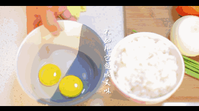 蛋黄、米、洋葱、青椒、胡萝卜、小葱、香菇