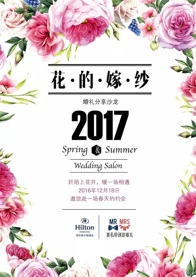 狂欢内容:郑州希尔顿酒店携手蜜私特创意婚礼及全城一线婚嫁品牌邀您赴一场婚礼沙龙,婚庆商家实惠到底,奢华品牌大奖免费送!