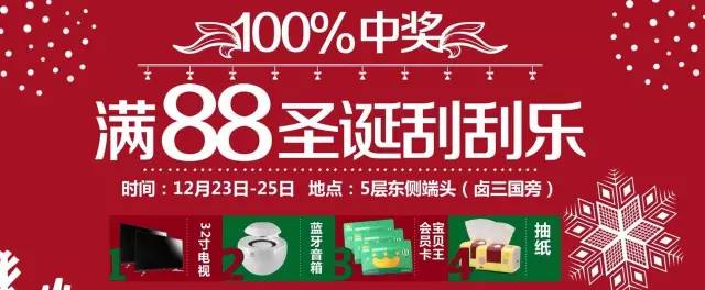 1,顾客当天消费满88元即可兑换刮刮卡一张,每人每单仅限兑换一张。