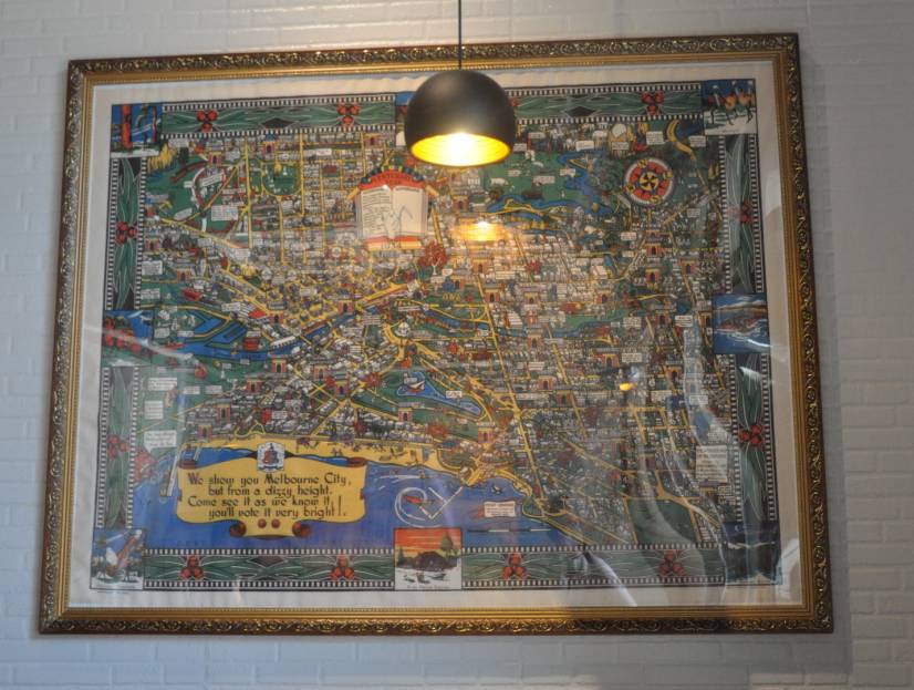 小小餐厅的墙面上挂着几幅澳大利亚交通线路图
