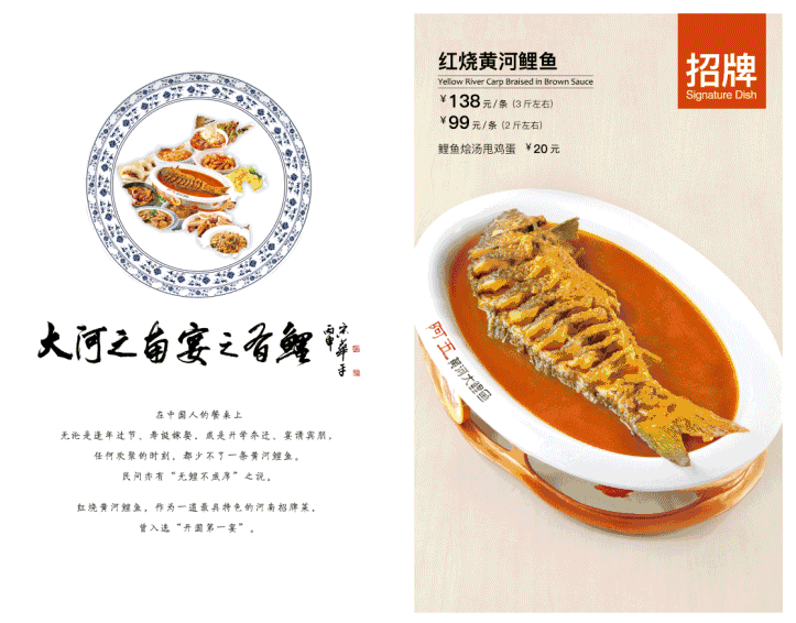 红烧黄河鲤鱼、藏红花扒广肚、石烹甜辣虾