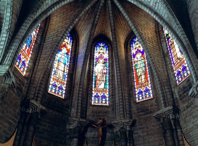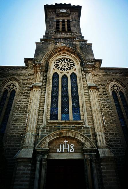 芽庄大教堂,法国哥特式风格,中世纪的玻璃窗户,以石头建造的内部墙壁给人清凉的感觉,并以染色玻璃作装饰,气氛非常神圣,这里早晚都会举行弥撒。