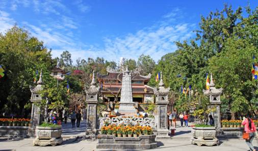 龙山寺是芽庄市最大的寺院,始建于 1889 年,经过数次装修、重建,成为今天的外貌,寺内有金色巨龙雕花装饰、有莲花池、佛教壁画等。