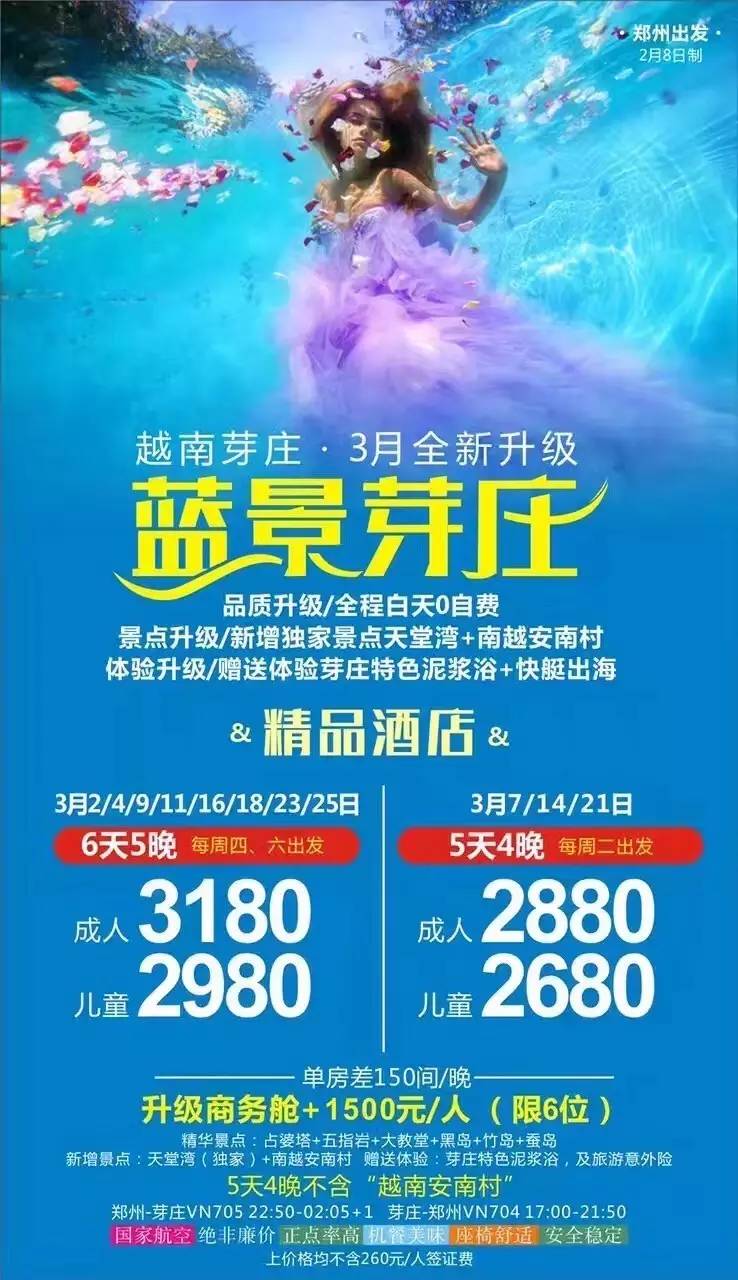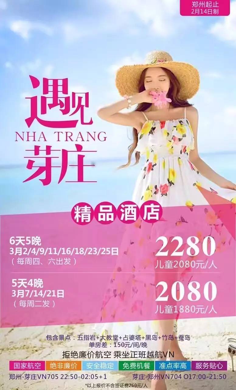 参考航班:郑州 - 芽庄 VN705 CGO-CXR 22:50-02:05