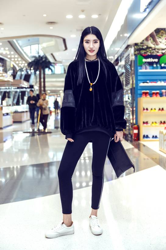 想要变酷就要学这个妹子。虽是全黑外加小白鞋,但脖子上的项链却是点睛之笔。令小编想到“大金链子小金表,一天三顿吃烧烤”,妹子,做我大哥可好!
