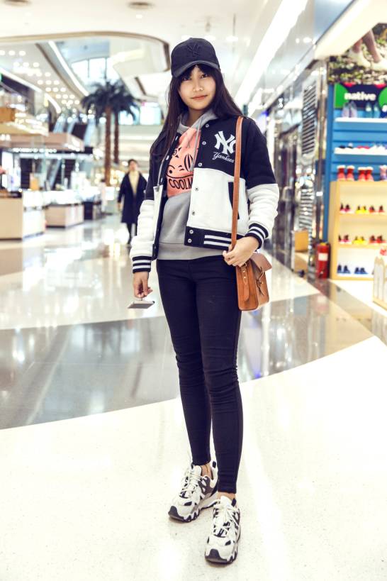 棒球衫可是初春一直大火的单品,内搭卫衣和运动鞋,外加一个鸭舌帽,妥妥的爱运动的活力小菇凉。棕色小方包也是妹子们逛街必备包包啊!