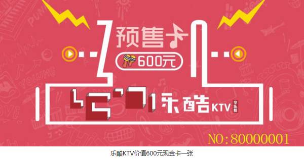 乐酷KTV开业之际,只需38元即可购买价值600元预售卡一张,58元即可购买价值1000元预售卡一张,2017年1月开唱。