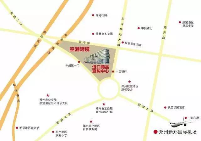 自驾路线:如果您从郑州开车来,走机场高速,快到新郑国际机场出口(约500米)的时候,路东就能看到空港跨境了,下桥即到。