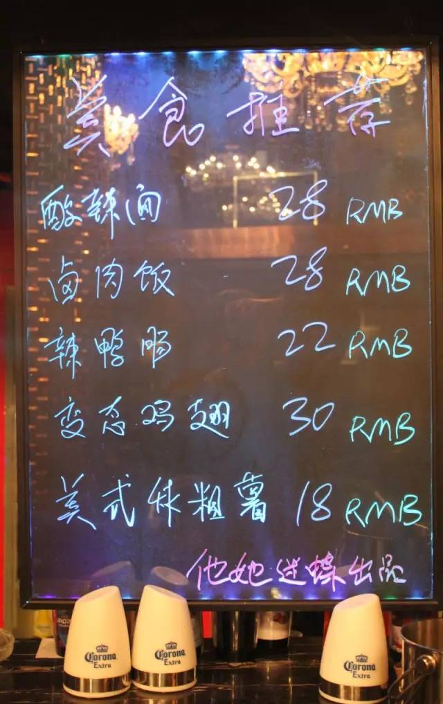 店内各种鸡尾酒、啤酒、红酒洋酒应有尽有,