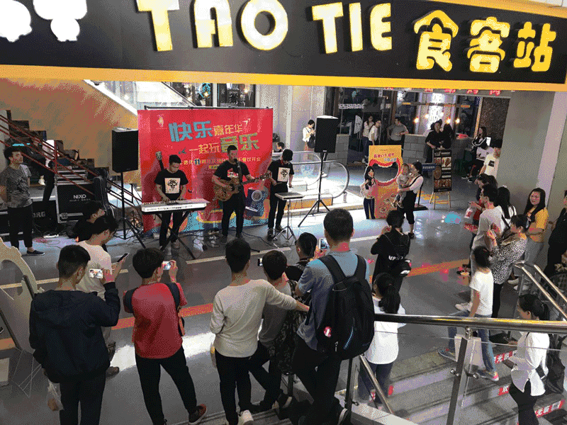 B区快乐嘉年华现场也有驻唱乐队用音乐吸引人们围观