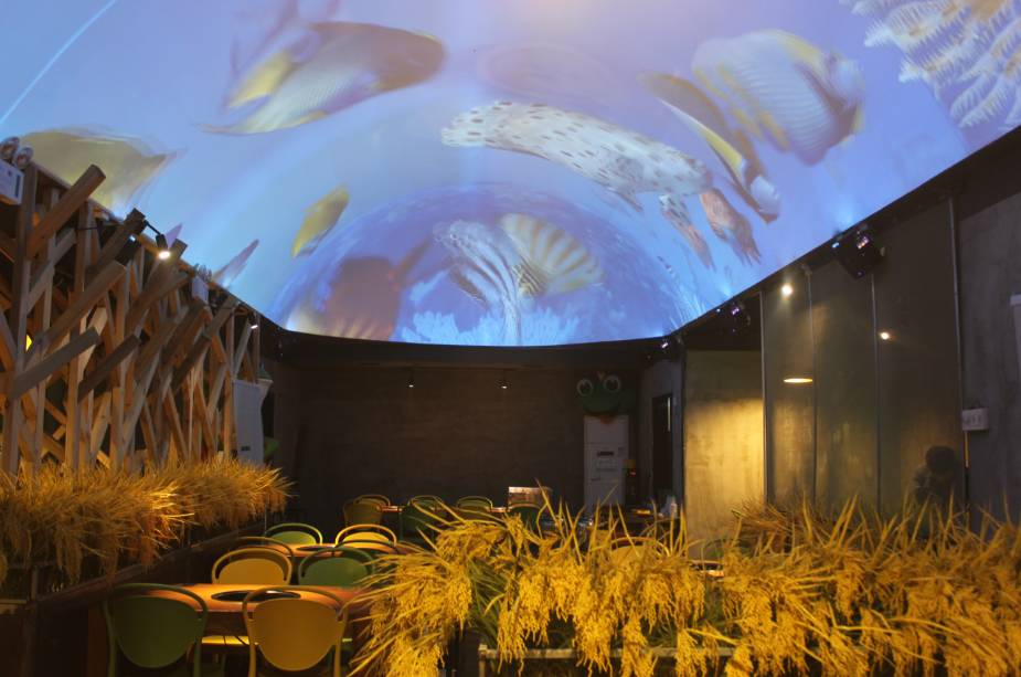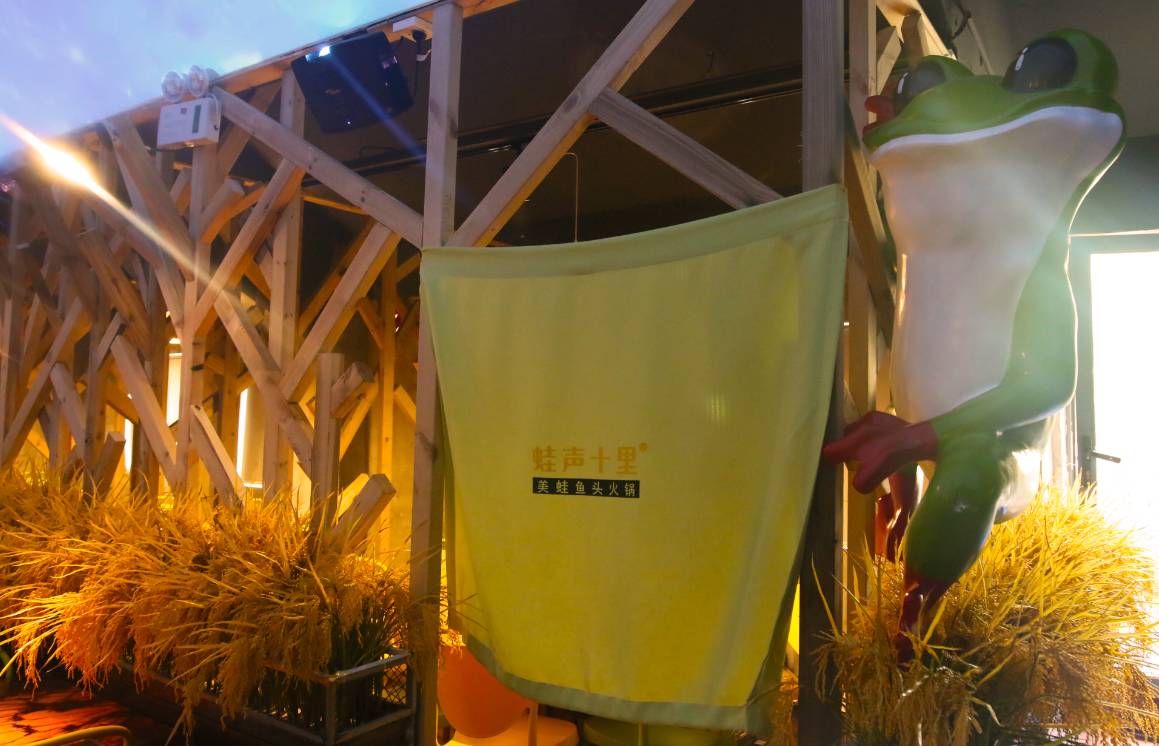 3D天花板、光束、荷塘、稻田、美蛙,各个细节都做的堪称完美!把一家牛蛙店做如此酷炫也是real用心了!