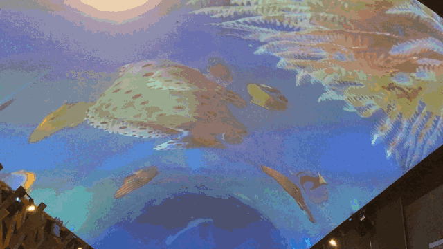 2楼的天花板是拱形的,3D效果依旧逼真,各种各样的鱼类就那么自由自在的游着,点菜早已抛之脑后,姐被眼前看到的美呆了!