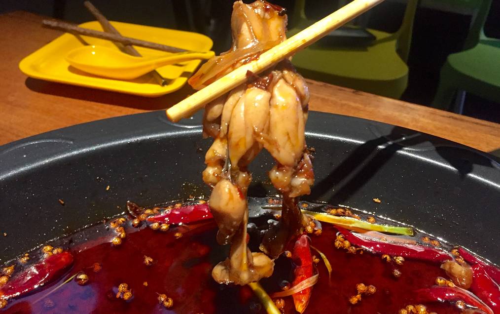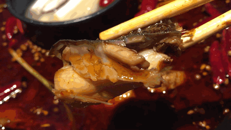 底料的麻辣煨进美蛙的肉肉中