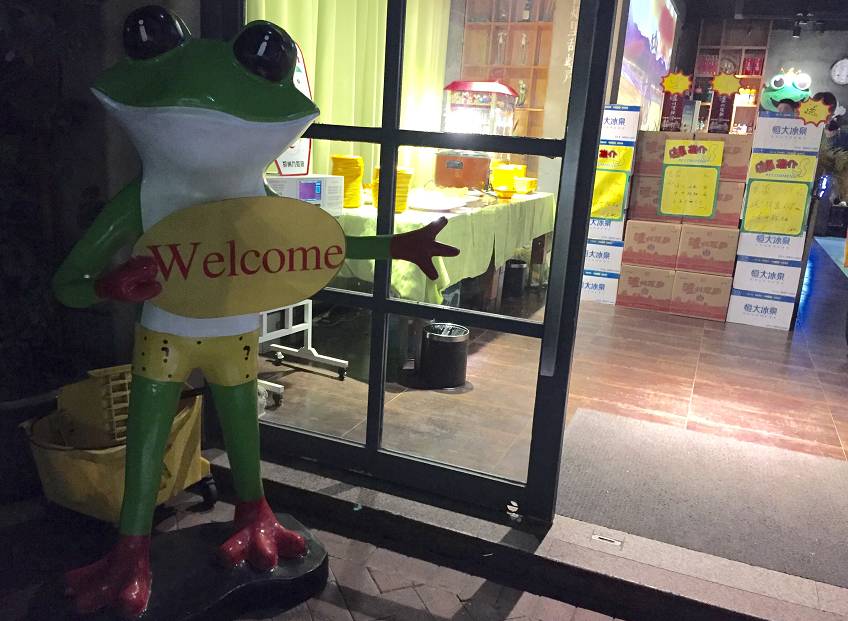 门面装修休闲带感,蛙元素随处可见。俏皮的大嘴鼓眼美蛙站在门口亲自恭迎你!