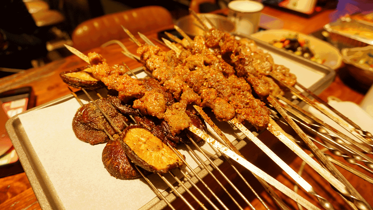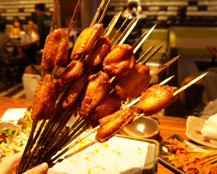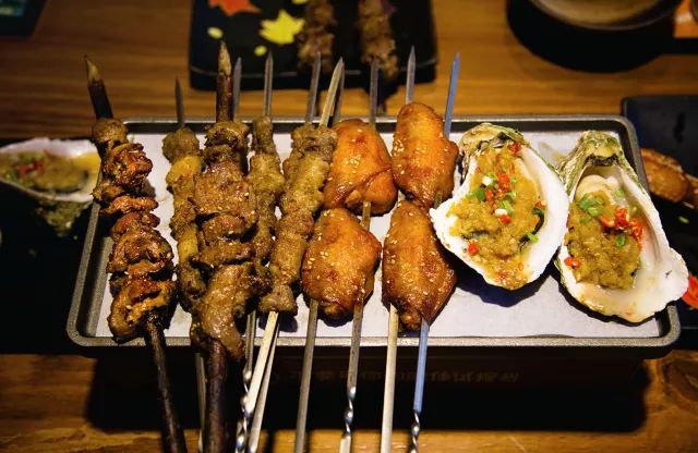 在这里吃着炭烤的烧烤喝着酒才带劲啊!