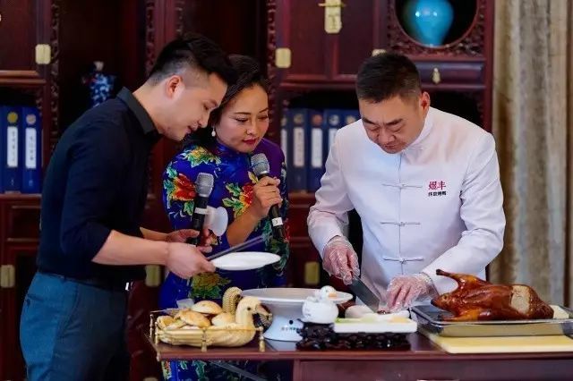 活动现场,顿玉松大师和王红丽老师为我们送上一道河南名菜汴京烤鸭和一段经典豫剧《铡刀下的红梅》。