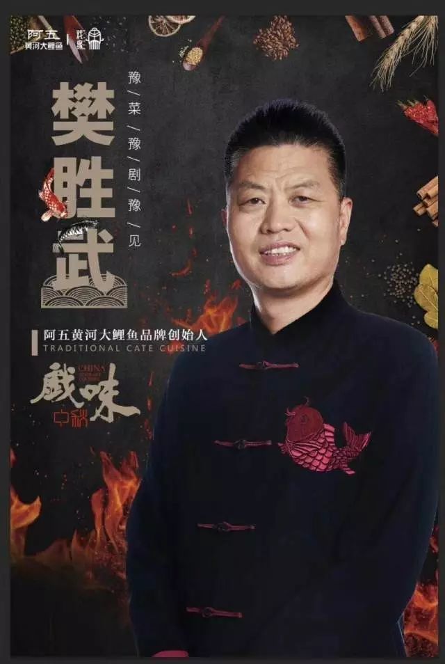 他是新派豫菜的开创者,也是豫菜复兴的“旗手”。他曾到访30多个国家和地区推广豫菜和中餐文化,也曾发起并举办“让豫菜站起来”“豫菜抱团打天下”“让世界品味中原”等系列活动,致力于让黄河鲤鱼成为河南名片。他将豫菜绝技带上了世博会的舞台,也将红烧鲤鱼推上了联合国的菜单。他就是中国烹饪协会副会长、阿五黄河大鲤鱼品牌创始人——樊胜武。