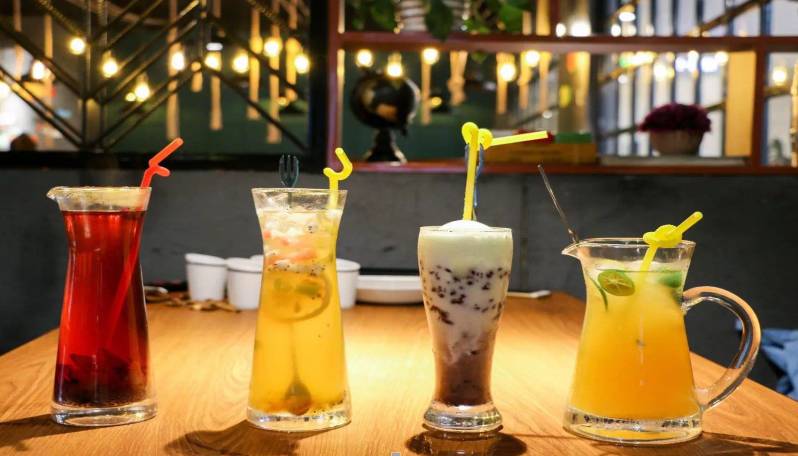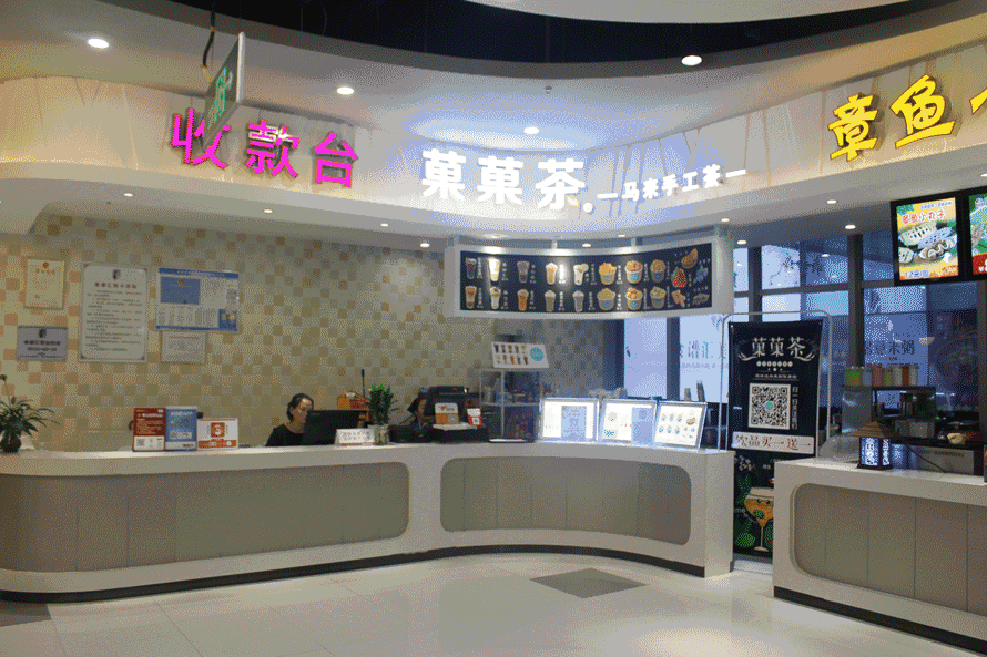 一共有26个档口、3个水吧。云南米线、南京粉丝汤、北京加盟的冰淇淋、马来西亚的菓菓茶……各地美食看得人眼花缭乱。